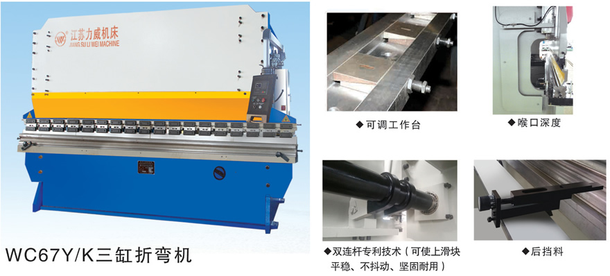 上模配有撓度補償機構,250噸和長度4000MM以上采用下撓度補償機構。