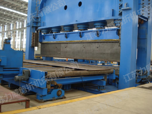 該機(jī)是大口徑直縫埋弧焊管生產(chǎn)線上的五大主機(jī)之一,主機(jī)由立柱、油缸、滑塊、油箱、橫梁、工作臺、預(yù)凸裝置、模具、液壓比例伺服系統(tǒng)、電氣數(shù)控系統(tǒng)組成。主機(jī)有3個數(shù)控軸,輔機(jī)有5個以上數(shù)控軸。輔機(jī)由縱向接料裝置、側(cè)擋料機(jī)、前后操作機(jī)、前后托料架、側(cè)出料裝置組成。